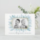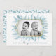 Folhagem perene de inverno aquarela azul abeto modelo de cartão de foto de Natal. Personalize com o nome da sua família e sua foto. Arte original em aquarela por Sarah Trett.