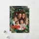 Envie votos calorosos de férias com este cartão de Natal fotográfico botânico lindamente desenhado. A frente do cartão apresenta um fundo verde profundo de floresta adornado com folhagem em aquarela exuberante, incluindo folhas de azevinho, galhos de pinheiro e bagas vermelhas, todos delicadamente dispostos em torno de um espaço de foto em forma oval. Os acentos dourados adicionam um toque de elegância e festividade, enquadrando perfeitamente a sua foto de família querida. Uma faixa "Feliz Natal" em vermelho festivo fica abaixo da foto para uma saudação personalizada. A parte de trás do cartão continua o tema botânico com amplo espaço para uma mensagem personalizada ou atualização, cercada por folhagem correspondente e detalhes dourados. Este cartão é ideal para compartilhar momentos alegres com os entes queridos e é um acréscimo impressionante a qualquer coleção