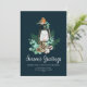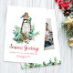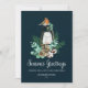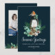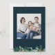 O cartão com fotos da família Saudações de Season apresenta uma bela cor d'água folhagem de inverno e ilustração de pássaros com um script e fontes serif em branco sobre fundo azul escuro. Este design mínimo, simples e elegante está pronto para você personalizar com sua própria foto e mensagem. Altere a cor do texto, a cor de fundo ou mantenha como mostrado aqui. Navegue na Coleção de Cartões com fotos da Família de Saudações da Estação para obter mais designs.