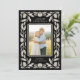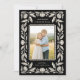 Envie na moda, belos cartões de natal para sua família e amigos com este Cartões de foto de Natal elegante e popular. Ele apresenta um quadro floral desenhado manualmente em marfim sobre um fundo preto puro, assim como um design interior escalpado, moldando sua foto. A parte traseira contém mais três modelos de fotos, bem como mais modelos de texto para personalização adicional.