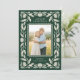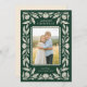 Envie na moda, belos cartões de natal para sua família e amigos com este Cartões de foto de Natal elegante e popular. Ele apresenta um quadro floral desenhado manualmente em marfim sobre um fundo verde da floresta, assim como um design interior escalado que enquadra sua foto. O verso contém mais modelos de texto para maior personalização.