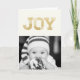 Tipografia JOY com Estilo Elegante, Glitter Dourado Falso em Creme Marfim, Cartão de Foto de Férias Moderno.
