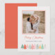 Este design de Natal animado e festivo mostra sua melhor foto pessoal favorita em formato quadrado e a palavra "Feliz Natal" (ou outro texto de sua escolha) em texto escrito à mão sobre um fundo limpo de cor de marfim com uma borda inferior ilustrada de Árvores de Natal rabiscadas. Placa inversa a uma cor laranja coral correspondente Adicione facilmente sua melhor foto, seus nomes familiares e o ano usando o modelo. Precisa de ajuda ou solicitação personalizada? Escreva um e-mail em citronelladesign@gmail.com