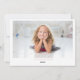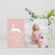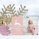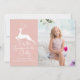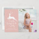 Um veado branco elegante salta sobre as palavras de Natal Esta é a Estação para ser Jolly neste lindo cartão de férias. elegância clássica com uma rena bonito sobre uma caligrafia maravilhosa e sua foto de família enchendo a frente deste cartão de saudação cor-de-rosa macio. O verso é um simples padrão de bolinhas em branco.