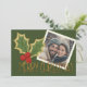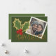Cartão De Festividades Foto Bordado de Natal com Folhas de Azevinho e Fru