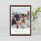 Cartão de Natal personalizado para recém-casados com padrão xadrez clássico de Natal e mensagem de Natal personalizada e foto.