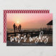 Compartilhe uma foto de férias favorita nesta temporada de festas com estes cartões de foto de Natal elegantes, apresentando um texto sobreposto em branco com letras à mão que diz "boas festas". Personalize com seu(s) nome(s), saudação e/ou ano. Os cartões invertem para um padrão geométrico sutil em vermelho cranberry e branco.