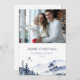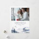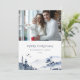 Cartão de Feriado Anual de Atualização da Família do inverno Azul. Elegante Atualização Anual da Família Feliz Natal em um estilo clássico com paisagem monocromática de inverno em cores azul e branco marinho. Na moda e design elegante. Uma foto.
