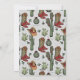 Este cartão de Natal festivo apresenta ilustrações ocidentais desenhadas à mão de uma coroa pinheira com botas de vaqueiro, chapéu de vaqueiro, bagas ocas, cactos e ornamentos de Natal vintage a tinta preta. Carregue sua própria foto da família e edite o texto para torná-lo exclusivamente seu. O verso apresenta um padrão fofo desses elementos do país. Fundo Elegante de cinza mole.