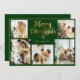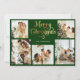 Envie um alegre feriado com um Cartão de Colagem de Fotos de Natal Verde e Dourado! Apresentando um roteiro de vídeo em tons de ouro e um fundo preto elegante, este cartão exibe lindamente fotos favoritas da família. É a mistura perfeita de elegância clássica e visões modernas, fazer-a como um eterno guardião para os entes queridos. Personalize com fotos e um nome de família para criar um cartões de natal único!
