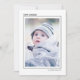 Cartões de foto elegantes e fofos são perfeitos para todos os seus amigos e familiares nesta época de festas. Personalize o texto "feliz hanuka" com seu próprio cumprimento e altere o nome da família e o ano e troque a imagem por uma foto de seus filhos, animal de estimação ou toda a família. O design apresenta uma borda preta em torno da imagem e um local para colocar o nome da sua família e o ano. A parte traseira apresenta flocos de neve dourados em um fundo preto.