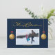 Cartão De Festividades Foto da Família Feliz Natal Caligrafia Azul