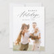 O design do cartão de felizes festas minimalista moderno apresenta um roteiro elegante e moderno na cor preto carvão, com foto da família personalizada, simples e único.