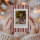 Cartão De Festividades Foto da família natalícia Modern Cranberry Pinstri