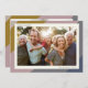 Celebrar Chanucá com este cartão com fotos da família na moda enquadrado em blocos de cor pastel suave de mauve, ouro e ardósia. O layout limpo inclui sua saudação personalizada e seu nome de família embaixo da foto, em uma fonte moderna sans-serif. Uma maneira nova e elegante de enviar desejos calorosos durante a estação da luz.