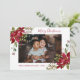 Este cartão de Natal apresenta um design de poinsettia de aquarela com letra moderna de script. Personalize-o com sua própria foto e texto.