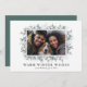 Belo design de fotos personalizadas com pinheiros de natal e ilustrações de bagas.