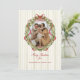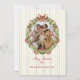 Eterno e cartão de Natal branco com fundo verde-cinzento e design de faixa aquosa com fita vermelha. Este cartão de feriado faz com que alguém sinta o espírito do Natal. Do lado da frente, temos a bela coroa - adorando brincalhosamente sua foto e do lado oposto está um pequeno arco verde sábio, outro modelo fotográfico e espaço para o seu Natal que deseja completar a mensagem perfeita. Espalhe alegria e alegre com nossa faixa de arco de aquarela.