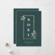 Moldura de ouro pálida e elegante, enfeitada com ramos de baga de inverno em fundos coloridos esfestivos esmeraldas. Design, formato em negrito NOEL, linhas de texto de modelo para nomes, ano e mensagem com espaço de foto de quadro em ouro pálido e solteiro na parte traseira.