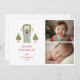 A aquarela clássica sage verde e crista vermelha de Natal com verde de inverno, sagrado e um arco vermelho bonito - personalizável com duas fotos e desejos de Natal.