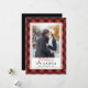 O cartão com fotos festivo de xadrez apresenta a sua imagem favorita num fundo de xadrez de búfalo pintado a vermelho e preto, coberto com folha de ouro falsa. A palavra "Paz na Terra" aparece por baixo em caracteres vermelho e preto de morango, com o(s) seu(s) nome(s) familiar(s) e o ano no tipo preto clássico. Personalize a parte de trás com uma foto adicional e uma mensagem personalizada, se desejar.