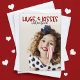 Envie valentins personalizados este ano usando uma foto de um membro da família ou animal de estimação favorito. Este design moderno de valentine apresenta uma foto vertical que se estende até as bordas do cartão, que você substitui pela sua própria foto. O verso do cartão segue o tema com um padrão de corações brancos minúsculos sobre um fundo vermelho vibrante. Um modelo de texto inclui texto de exemplo para você personalizar como desejar.