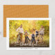 Este cartão de felicitações de Ação de Graças apresenta uma foto horizontal e texto de caligrafia manuscrita em cima da foto. O texto diz: "Muito Grato Feliz Ação de Graças. Personalize este cartão de Ação de Graças moderno com o nome da sua família e ano.
