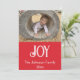 Este é um cartão moderno e colorido para as férias. A frente apresenta uma foto de solteiro com tipografia moderna e simples. A primeira linha diz JOY. A frente também contém seu nome de família e o ano. A parte traseira da placa apresenta um padrão em toda parte no mesmo vermelho com espirais prateadas para um toque de na moda. Coordenando itens disponíveis na minha loja.
