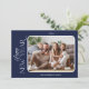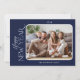 Este simples e elegante cartão de saudação de Feliz ano novo apresenta uma foto em um fundo azul escuro. Adicione sua própria mensagem pessoal no verso.