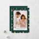 Mande cartões de natal para os entes queridos em estilo com nosso cartão com fotos de Natal Moderno Desenhado à Mão. O cartão de cartões de natal mostra a sua fotografia desenhada em branco com um padrão de árvores de Natal desenhadas à mão e presentes numa paleta colorida de verde, cor de rosa, dourado e vermelho. Personalize a frente adicionando uma saudação personalizada e seus nomes. A placa reverte para um fundo verde de floresta sólido com espaço para uma mensagem personalizada ou outra foto.