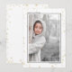 Cartões de foto estilosos e fofos são perfeitos para todos os seus amigos e familiares nesta época de festas. Personalize o texto "saudações da temporada" com a sua própria saudação e altere o nome da família e o ano e troque a imagem por uma foto de seus filhos, animal de estimação ou toda a família. O design apresenta uma borda preta em torno da imagem com boque de ouro ao fundo e um local para colocar o nome da sua família e o ano. O verso apresenta o mesmo boque de ouro com estrelas douradas em um fundo branco.