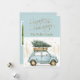 Seus amigos e familiares vão adorar este divertido cartão de Natal Antigo com uma foto personalizada no verso. Este cartão apresenta um divertido carro retrô em aquarela carregando uma árvore com respingos de dourado e um lindo fundo azul suave.