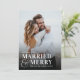 Compartilhe uma foto de casamento nos feriados com esses Cartões de foto de Natal ousados e modernos baseados em tipografia. Design apresenta uma foto vertical ou orientada para retrato do solteiro de sangramento de cheio, com "casado e feliz" sobreposta em letras brancas e unida por um ampersor sobredimensionado. Personalize com seu casamento e nomes.