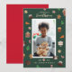 Presentes de natal originais assados e biscoitos de natal em moldura verde com foto de retrato.