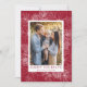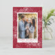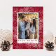 Cartão de feriado elegante com sua foto emoldurada por flores de poinsettia desenhadas por caneta branca, pinecones e grampos de pinheiro em um fundo festivo de amora. "Felizes Feriados" é exibido em caracteres clássicos de amora-de-groselha com o nome da sua família abaixo. O cartão de feriado moderno se reverte para exibir um padrão de amora correspondente.