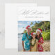 Traga o espírito de aloha para os seus cumprimentos de Natal com este alegre cartão Mele Kalikimaka. Com um cenário de praia ensolarada, cores tropicais vibrantes e uma foto alegre da família, este design captura a magia de um Natal quente na ilha. A caligrafia elegante adiciona um toque sofisticado a este cartão alegre e festivo. É perfeito para famílias que amam areia, surf e celebrar a temporada com sol e sorrisos.