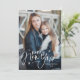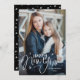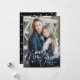 Mande alegria de férias para sua família e amigos com este cartão moderno de Ano Novo, com letra de mão! O cartão de feriado tradicional mostra a sua foto vertical com a frase "Feliz ano novo", em branco, com a inscrição à mão rodeada de estrelas desenhadas à mão. Personalize o cartão de Ano Novo com seu nome e ano. A placa reverte para exibir um padrão de estrelas pretas e brancas desenhadas à mão.