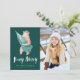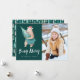 Deseje aos amigos e à família um Feliz Natal com os nossos cartões com fotos de férias da Feliz Beary! Os cartões de natal bonitos apresentam um urso marrom vestindo um chapéu de Papai Noel carregando uma árvore de Natal de volta ao seu toca-discos. As palavras "Feliz de Beary" são apresentadas abaixo em uma fonte de script branca, escrita à mão contra um fundo verde da floresta. Personalize adicionando sua foto favorita e seus nomes. No verso do cartão, apresenta-se um padrão de árvore de Natal giro em vários tons de verde e verde.