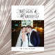 Celebre seu primeiro Natal como um casal casado com este cartão de feriado elegante e sincero. Apresentando espaço para seu casamento ou foto de noivado favorito, esta design capta maravilhosamente a alegria de ser feliz e casado. Perfeito por enviar desejos de férias calorosos a familiares e amigos enquanto comemorava seu marco especial como recém-casados.