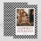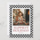 Cartão de Feliz Férias em Xadrez Preto e Branco com Foto de Feliz Férias em Xadrez de Buffalo.