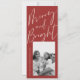 Este design de cartão de solteiro fotográfico apresenta um script de estilo manuscrito de tendências em uma saudação de "Feliz e Brilho", com bastante espaço no verso para uma longa mensagem familiar. O plano de fundo do cartão é vermelho, mas você pode personalizar e personalizar este cartão como quiser.
