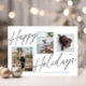 Este cartão de Natal casual, mas elegante, apresenta três fotos e lê "Felizes Festas" em uma fonte preta de caligrafia.