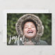 Celebre a temporada com este cartão festivo com a foto do tamanho do seu cheio e a palavra "alegre" em letras brancas. Adicione seu nome e data para personalizar. A parte de trás apresenta um padrão de bolinhas espiritual na cor de sua escolha.