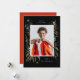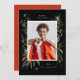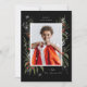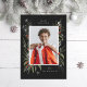 Ilustração original de bagas de natal e pedaços de neve sobre preto com foto de retrato. Personalize o verso conforme desejado.