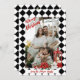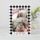Fundo xadrez preto e branco trendy com motivo de Natal e foto personalizável. A árvore de Natal ao fundo é um objeto modelo. Você pode mudar o fundo para o que quiser.