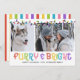 Este cartão festivo de Natal apresenta uma série de luzes de férias, duas fotos suas e seu(s) cachorro(s) doce(s) ou apenas seu(s) cachorro(s) na frente com as palavras "Furry & Bright", e assinou Feliz Natal com seu nome familiar. As fontes são felizes e alegres em cores brilhantes do arco-íris. Ele tem um arco-íris de coordenação riscado para trás. É tão fácil fazer deste cartão o seu. Basta selecionar Personalizar este modelo, digitar o nome da sua família e carregar as suas fotografias favoritas. É super fácil!