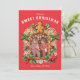 Este Cartões de foto de Natal divertido apresenta um doce gerado pela IA coberto de foto Gingerbird que é perfeito para destacar sua foto favorita de feriado em um fundo vermelho. Há um tipo curvo que diz "Tenha um bom Natal" no topo. Abaixo da foto está um lugar para personalizar com nomes. As costas têm um padrão polkadot vermelho e branco.