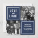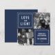 Mostre suas fotos quadradas neste simples e moderno cartão com fotos Chanucá. Design apresenta um layout quadrado com um fundo azul marinho e "Love and Light" em caracteres brancos modernos. Use os dois campos de texto personalizáveis para adicionar uma saudação personalizada e seu nome de família. Fotografia © Storytree Studios, Stanford, CA