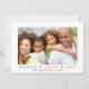 Um cartão de cartões de natal de Natal que apresenta a sua foto favorita da família, "Paz", "Amor" e "Alegria" em cores lacrimogêneas, cor-de-rosa e douradas, com cada palavra separada por um coração vermelho. Na parte inferior você pode adicionar seu nome de família e o ano.