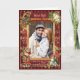 Saudações de feriado em estilo álbum de recortes antigo com foto da família. Listras vermelhas profundas, Papai Noel com crianças e moldura dourada para sua foto e você pode alterar a mensagem na capa deste cartão de Natal. Muito espaço no interior para sua mensagem pessoal e nome da família. Ótimo design da TLS Designs.